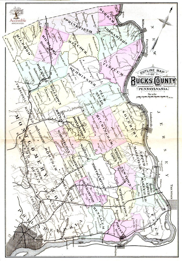Bucks County is one of the three original counties created by colonial proprietor William Penn in 1682, naming it after Buckinghamshire, the county where he had lived in England.