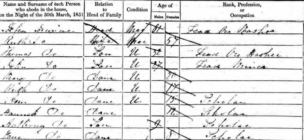 Three branches of our family tree lived in the area around Nenthead and Alston in what was then Cumberland (now Cumbria) and worked in the lead mines there. Today, this remote valley is covered by remains from the lead and zinc mining industry of the North Pennines, including mine entrances, watercourses, dressing-floors and buildings. This heritage is of national importance, and a number of mining sites and remains have been designated by English Heritage as scheduled ancient monuments. Alston is the highest market town in England with streets “Inconveniently steep and narrow”