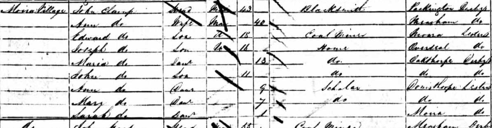 Annette’s second Great Grandfather, John Clamp was actually the son of a Blacksmith (3rd Great Grandfather), also named John, who, according to the 1851 census, was the village blacksmith in Moira, a village about 3 miles south of Swadlincote and close to the boundary with Derbyshire.