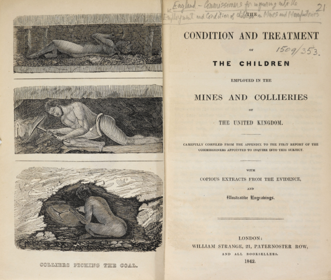 In 1842 the government published the Report of the Children’s Employment Commission. It is one of the most important documents in British industrial history. Comprising thousands of pages of oral testimony (sometimes from children as young as five), the report’s findings shocked society and swiftly led to legislation to secure minimum safety standards in mines and factories, as well as general controls on the employment of children.