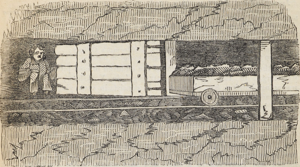 Conditions were cramped. Some of the underground roadways were as little as 60 – 120 cm in height. Mine owners did not want to increase their costs by making them bigger. So small children were often used to pull or push tubs or large baskets of coal on sleds along the low and narrow roadways.