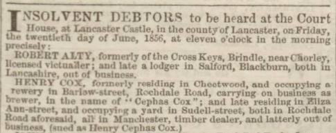 The Innkeeper before Richard was Robert Alty, who n 1856 ended up as an insolvent debtor, with a hearing in Lancaster Court.