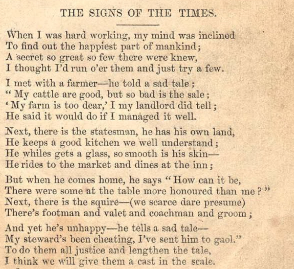 His poems were published in 1860 in a small volume called “The Patriarch’s Aeolian Harp’, by Isaac Robinson. In his preface, Robinson says, “to the fastidious reader, they may appear full of unpardonable inaccuracies – but what can be expected of a man who could write his own name until he arrived at manhood’. But he decided not to edit the poems, for fear of destroying their originality. He says they contain quaint expressions from a rural life of decades earlier, with rhymes that only work with a local accent that was fast disappearing.