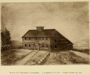 One of Billerica’s most famous families was the Danforth family. Captain Jonathan Danforth was one of the most influential surveyors in the Merrimack River Valley and its lower tributaries (in Massachusetts and New Hampshire) of the late 1600s and early 1700s. His elder brother, Thomas, had a long career in public service, holding positions in the Massachusetts legislature and as president of the Province of Maine. In his final years, he was an associate justice of the Massachusetts Superior Court. Notably, he served as a judge during the Salem witch trials of 1692 – though he is inaccurately depicted in Arthur Miller’s 1953 play The Crucible and its movie adaptations as doing so. He is presented as a harsh and domineering governor, though in reality, Danforth is recorded as being critical of the conduct of the trials, and actually played a role in bringing them to an end.