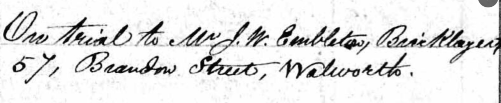 Alfred is listed in the Bermondsey Workhouse records as an orphan, which is odd, given his parents were actually still alive. But this may have been a way for Alfred to learn a trade, which he did, being assigned to a bricklayer, Mr J W Embleton of Walworth. For Alfred, it worked – he worked as a bricklayer for the rest of his life